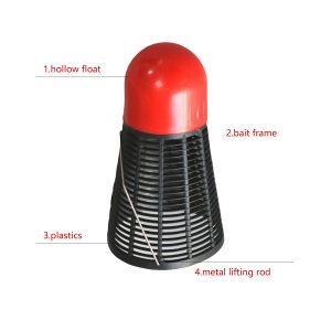 1. Инновационный дизайн формы: использование обтекаемого внешнего вида бадминтона, красная крышка с черной сетчатой клеткой, как красивой, так и привлекательной, уникальной в рыболовном снаряжении